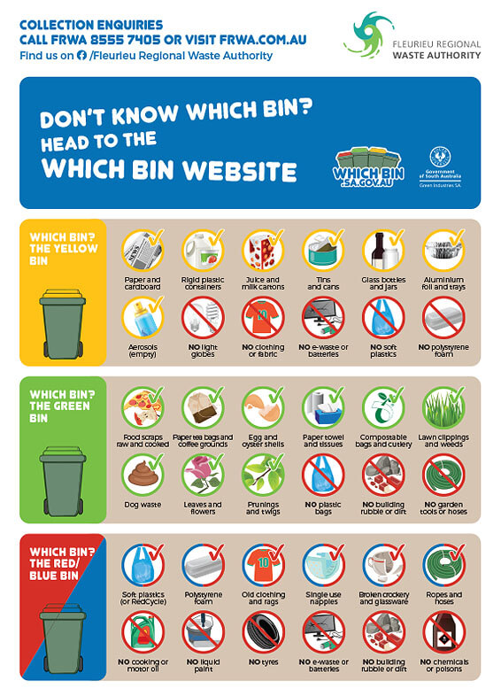 Detailed information on correct use of the kerbside bin system and recycling is available on FRWA’s Kerbside Collection ‘which bin do I use’ page as well as the pages under Waste and Recycling. Download our teacher resource sheet for helpful links to other sources of information about recycling and waste.
